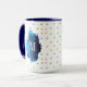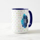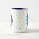Elegant färglös polkadots sömlös mönster över vit bakgrund och blå vattenfärgstrypning för anpassningsbar monogram.