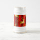 I elegant har julstommen ett mönster med gyllene renar och stampar med guld God jul hälsning. Alla runt omkring dem finns blommor av guldfärgad snö och en färgstark röd gradient mönster under dem. Bara sak för att dricka din ägggong från över helgdagarna.