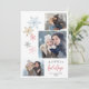 Detta moderna 3-fotojulkort ger färgad snöflingor i blått, guld, rosa och grått. Hälsning "Happiest Helgdagar" visas i en kombination av böjd och handskriven stil-text. Anpassa med familjens foton, namn och år.