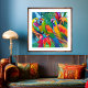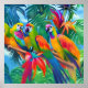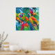 Färgfläckfåglar Tropiska Blommigten handflatan trä Poster