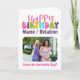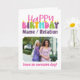 Personlig Grattis på födelsedagen-fotokort med färggranulat. Mallen är redot för dig att lägga till 3 av dina favoritfoton och anpassa ordalydelsen med namn eller relation (t.ex. Isabella/bestie/syster), ett meddelande vid grund som "ha en fantastisk dag!". Du kan också anpassa meddelandet inuti om du vill.