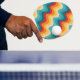 Multifärgad reflexillustration av vinkara mönster med orange, rött, beige, gult, blått och turkos vågigt rand dekoration för alla som tycker om retro stil-design och stil palett.