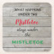 Den här lekande och färglösa underlägg accentueras med det söta talesättet: Vad händer under Mistletoe Stays under Mistletoe, skapar det som ett underbart tillbehör för din julfest. Denna underlägg ingår i Mistletoe Helgdag Collection.