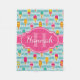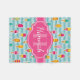 Cute och färglöst popsicle mönster i skuggor av rosa, blått, gult och orange på blå rand-bakgrund. Den är fylld med en vit och rosa etikett med anpassade namn och monogrammall.