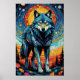 Färgfläckig mosaikillustration av Majestisk Varg Poster