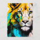 En levande bild av ett lejon som innehåller en mängd fet färg, som skapar en dynamisk och modern känsla. Stänk i färg kompletterar den slående lejona blandningen av abstrakt inslag med djurets påtvingade närvaro.
