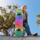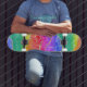 Denna fantastiska skateboard har en allt snabbare utformning i regnbåge färg med vener från guld och glitter.