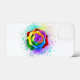 Stora, blommande ro med regnbåge mot vit bakgrund, målade över med stänk av färgstark, ljusstark färg. 3d