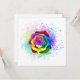 Stora, blommande ro med regnbåge mot vit bakgrund, målade över med stänk av färgstark, ljusstark färg. 3d