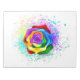 Stora, blommande ro med regnbåge mot vit bakgrund, målade över med stänk av färgstark, ljusstark färg. 3d