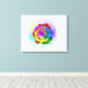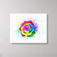 Stora, blommande ro med regnbåge mot vit bakgrund, målade över med stänk av färgstark, ljusstark färg. 3d