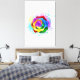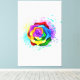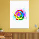 Stora, blommande ro med regnbåge mot vit bakgrund, målade över med stänk av färgstark, ljusstark färg. 3d