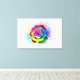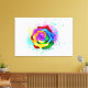 Stora, blommande ro med regnbåge mot vit bakgrund, målade över med stänk av färgstark, ljusstark färg. 3d