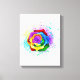 Stora, blommande ro med regnbåge mot vit bakgrund, målade över med stänk av färgstark, ljusstark färg. 3d