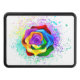 Stora, blommande ro med regnbåge mot vit bakgrund, målade över med stänk av färgstark, ljusstark färg. 3d