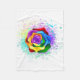 Stora, blommande ro med regnbåge mot vit bakgrund, målade över med stänk av färgstark, ljusstark färg. 3d