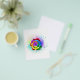 Stora, blommande ro med regnbåge mot vit bakgrund, målade över med stänk av färgstark, ljusstark färg. 3d