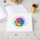 Stora, blommande ro med regnbåge mot vit bakgrund, målade över med stänk av färgstark, ljusstark färg. 3d
