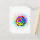 Stora, blommande ro med regnbåge mot vit bakgrund, målade över med stänk av färgstark, ljusstark färg. 3d
