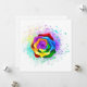 Stora, blommande ro med regnbåge mot vit bakgrund, målade över med stänk av färgstark, ljusstark färg. 3d