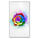 Stora, blommande ro med regnbåge mot vit bakgrund, målade över med stänk av färgstark, ljusstark färg. 3d
