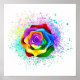 Stora, blommande ro med regnbåge mot vit bakgrund, målade över med stänk av färgstark, ljusstark färg. 3d