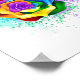 Stora, blommande ro med regnbåge mot vit bakgrund, målade över med stänk av färgstark, ljusstark färg. 3d