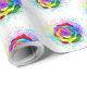 Stora, blommande ro med regnbåge mot vit bakgrund, målade över med stänk av färgstark, ljusstark färg. 3d