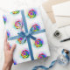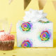 Stora, blommande ro med regnbåge mot vit bakgrund, målade över med stänk av färgstark, ljusstark färg. 3d
