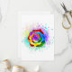 Stora, blommande ro med regnbåge mot vit bakgrund, målade över med stänk av färgstark, ljusstark färg. 3d