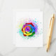 Stora, blommande ro med regnbåge mot vit bakgrund, målade över med stänk av färgstark, ljusstark färg. 3d