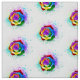 Stora, blommande ro med regnbåge mot vit bakgrund, målade över med stänk av färgstark, ljusstark färg. 3d