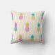 Den här roligten har ett skarpt bilder av färgade ananas på en pastellbaserad gult och vit strimlad bakgrund. Färg ingår i teal, rosa, guld och cerulenblått. Båda sidorna av kudden har samma utformning. Se till att se motsvarande filt och andra produkter i vår butik.