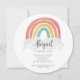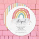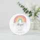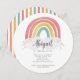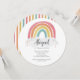 Inbjudan till färgfull regnbåge i Barns födelsedag innehåller en regnbåge i hand plockade i skuggor av rosa, orange, gult och turkos och en kalligrafi av trendiget i namn.
