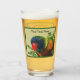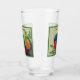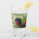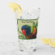 Denna glastumör för drycker har en färglös lakakrot med rött slag framför grönt bladverk på ljust grönt bakgrund med mörk grönt gräns. Anpassa texten med mallen.