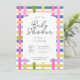 Färgfull plaid baby-show-inbjudan i en kalk, grönt, blått, persika, rosa och vit palett med mörk grått-teckensnitt. Anpassa på teckensnittet mönster, färg och stil för att skapa din inbjudan att visa baby i drömmen. Perfekt för babyduschar i babykläder, babyduschar i vår, babyduschar i påsk, sommarduschar och babyduschar i blommigt. OM: plaid dusch inbjudan, färglös e-vite, inbjudan till sommarfest, sött schackbräde, inbjudan till trädgårdspartier, maximalistisk baby show evite, inbjudan till regnbåge, gigabusdusch, feminin dusch inbjudan