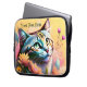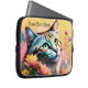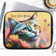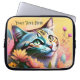 Laptop sleeve med en färgstark målning av ett sött kattunge med blommor. Texten är valfri.