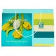 Färgfull rand i färsk form, lycklig, levande färg med ett monogram och ett Påsk-foto av gult-tulpaner och ett Påskägg med kalligrafi-skript Glad påsk och söt kort. Mörk och ljusblyor med ljusgrädda, grönt och gult färg lycklig. Fullt anpassade monogram och foto. Anpassa genom att ändra texten, initialer och namn eller ersätta med egen logotyp och egen bild. Lycklig färglöst Påsk!
