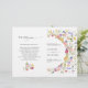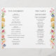 Gör din bröllopsdag oförglömlig med vårt vackert utformade bröllopsprogram för blommigt. Den ömtåliga blomkransens krans för med sig en romantisk, trädgårdsinspirerad beröring till firande. Anpassa kortet med din egen text och justera teckensnittet stil, färg och layouten till kostym med din smak genom att klicka på knappen Anpassa ytterligare.