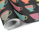 Retro porcelain tea kopp i rad, färglöst kaffe koppar i svart bakgrund. Vintern säsong hett kopp av kaffe i lila, orange, gult och blått fet färg.