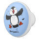 Den här designen har en söt, lycklig-puffin på blå bakgrund i den vackra tecknaden stil. Massa roligtar!