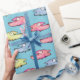 Ge en gåva i detta vackra och vackra, färgstarka lycklig som badar pappert i fisk kommer att ge leende till allas ansikte! Mönster är fullt av röd, blå och gult mala fisk på havets blå bakgrund.