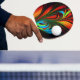 En blomformad ramutformning i många färg - rött, grönt och gult - på en svart bakgrund gör stänk på den här pingpongpaddeln.