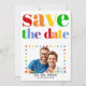 Färgfulla brev, punkter och rand Gay-fotoannonsering.