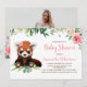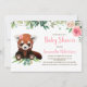 Den berömvärda rosa blommigten greenery eucalyptus vattencolor baby red panda björn, vi kan vänta tidigt, flicka babyduschinbjudan. Det är en flicka! Du kan anpassa den här söta inbjudan med egen text och egen bild. Ersätt exempelfotot med ett eget. Fotoprov från https://pixabay.com/es/users/regina_zulauf-2147792/