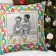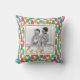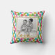 Lägg till lite roligt och en spricka av färg till din helgdag-dekoration med den här roligten fotojul dekorativ kudde, som har en mönster av överlappande färgpapper Julgranar och en faux guld foil ram. Formgivningen är densamma på framsidan och baksidan - så om något händer på den ena sidan, så har du fortfarande har på den andra sidan! ;) Med en vit övertoning mot grund i fotomallen kan texten stå mot fotot.