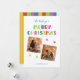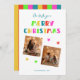 Roligt och glad design med färgstark och fet brev-text "God jul" med två familjefotografier. Det här hälsningskortet är perfektens val att sprida glädje denna jul! Anpassa den utan problem.