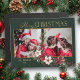 Festiv och färglös helgdag med en tvåfotomall med anpassningsbar guld God jul textgrafik med en sprej av traditionella julstolpar och holly på gröntens bakgrund.