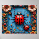 Färgade ladybuggar som är sitta på blå yta med blommor