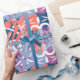 Färgfull Abstrakt LÖV Mönster-inslagning Papper. Utformningen visar ett mönster i löv i korall, blått, lilac och pulverblått.